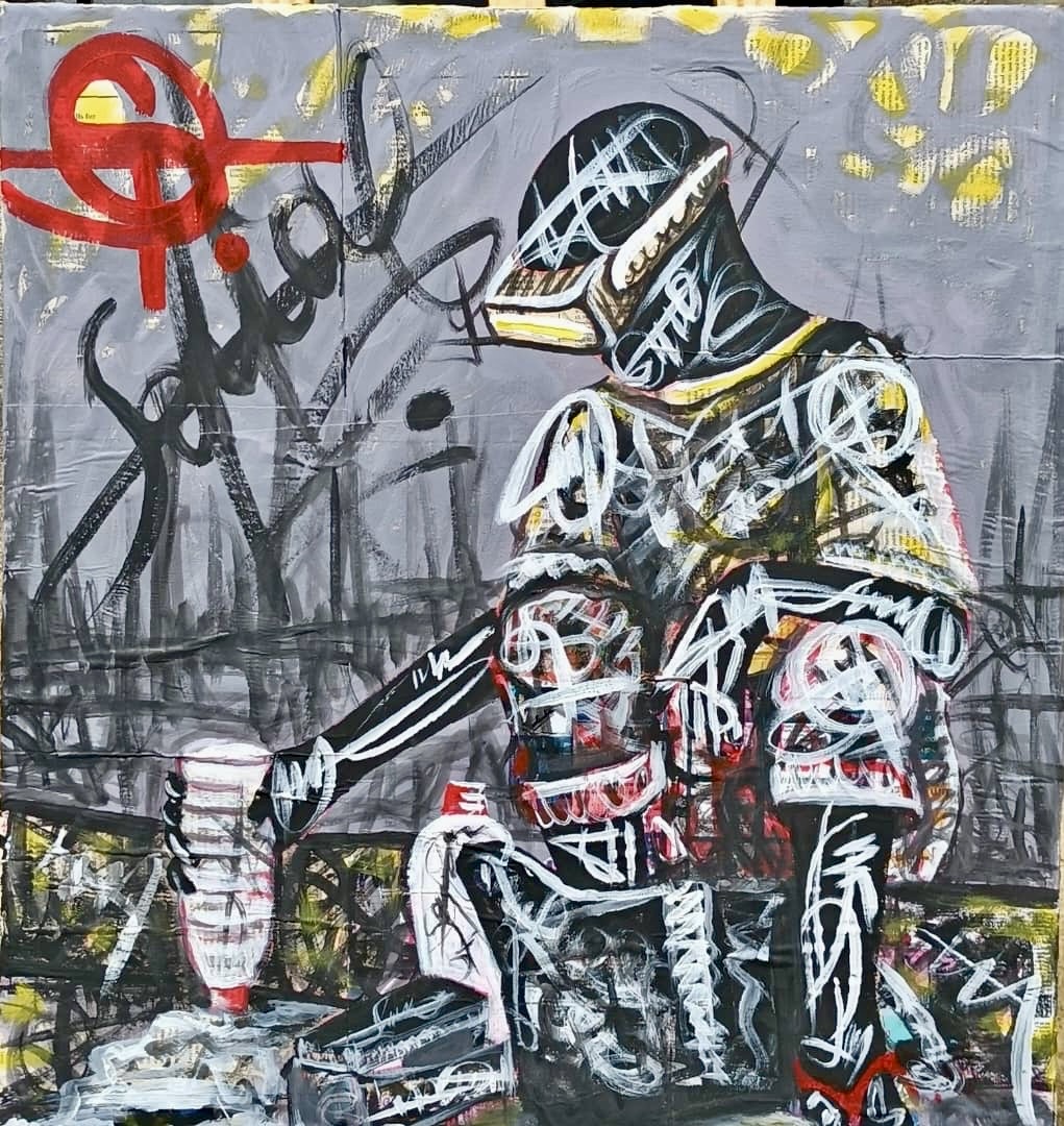 Technique : collage papier revue et signature sur toile- Location: A louer