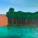 Ce pont, en apparence fragile, mais d’une étonnante solidité, rappelle la fragilité de l’enfance, soutenue par la force invisible des liens: ceux de la famille, de la culture, de la communauté. Ici, l’environnement réel devient le berceau du rêve et du potentiel. Mes touches d’or (ma signature) incarnent ce que j’appelle « l’or du potentiel » : cette lumière et cette richesse intérieures qui guident, nourrissent et sécurisent le chemin de vie. Et vous, que vous inspire ce dialogue entre la fragilité, et la force, entre le rêve et le pont de lianes ?