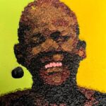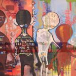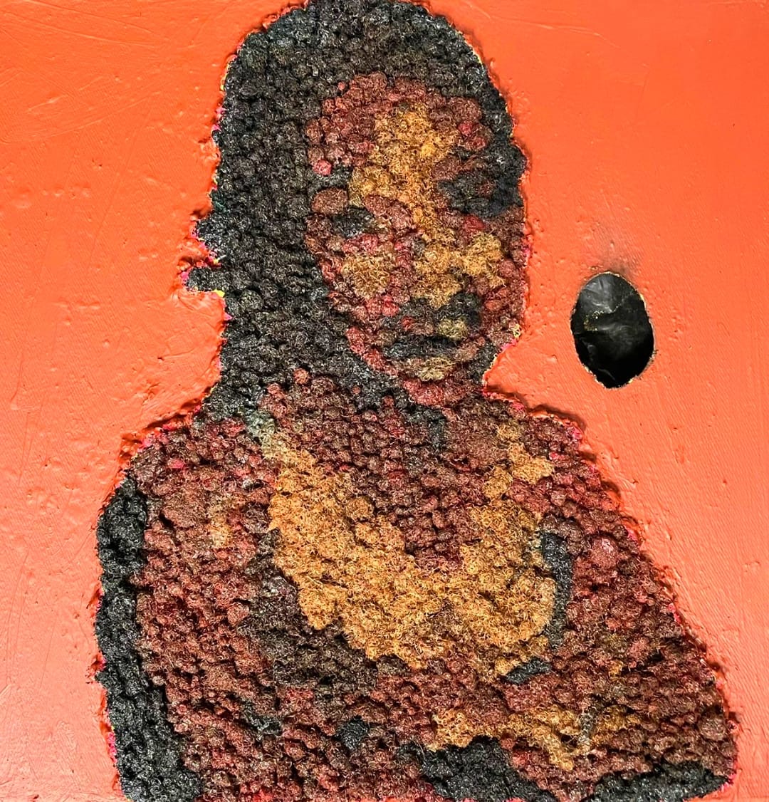 100 000 CFATechnique : collage des mèches humaines + acrylique sur toile
